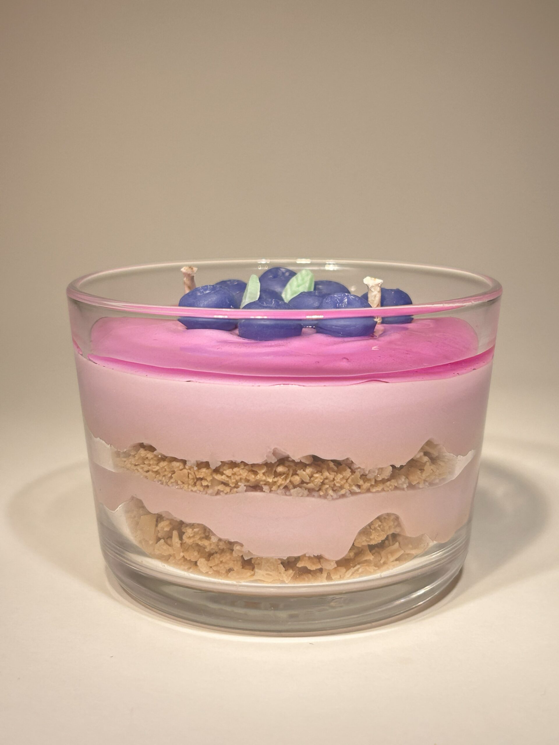 Et delikat soyavokslys med duften av lett vaniljekrem og saftig blåbærgelé.