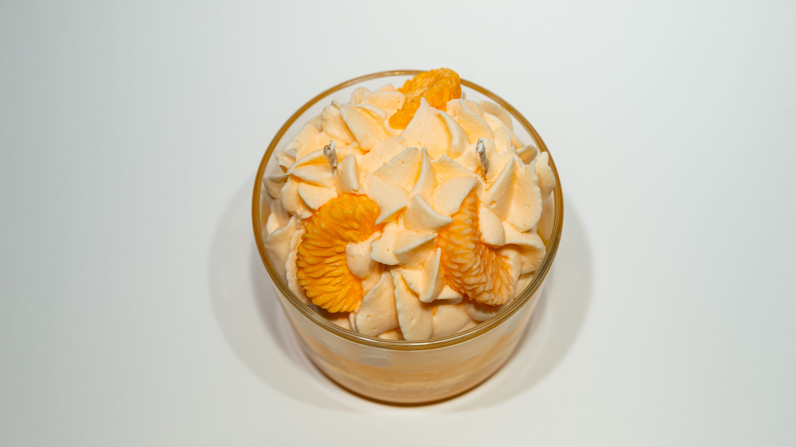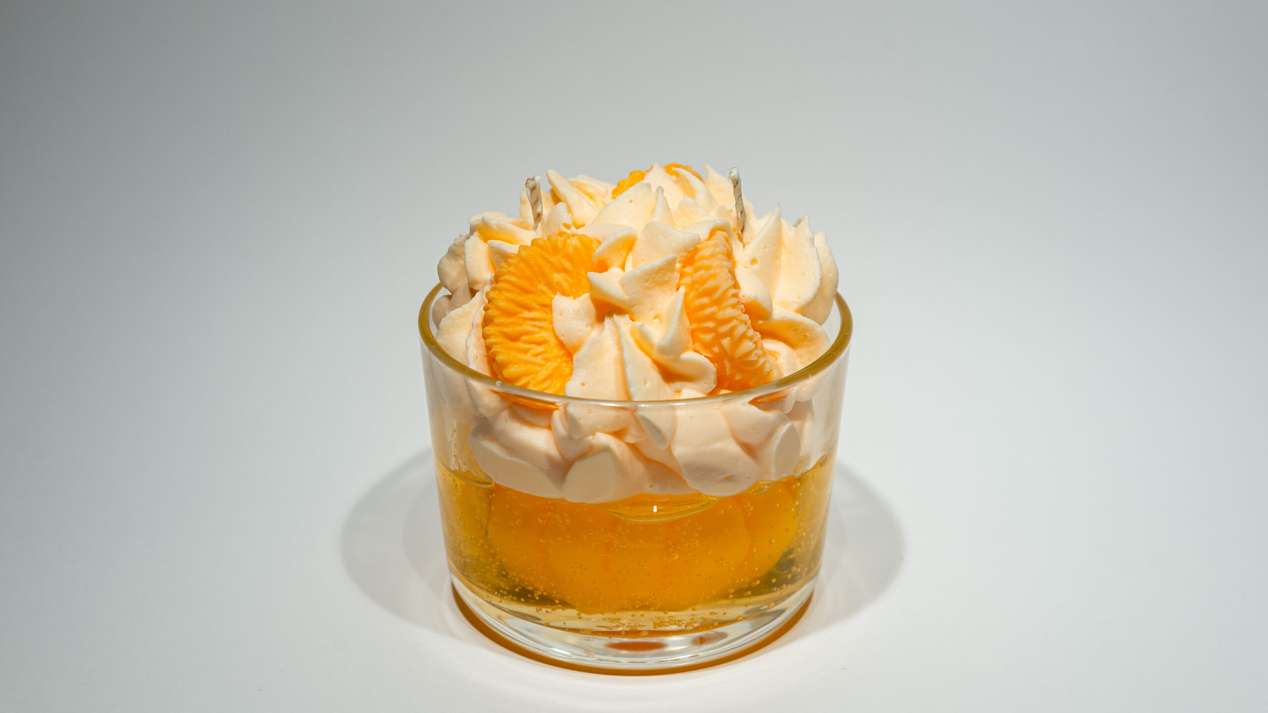 · Design: Et vakkert lagdelt utseende med en silkemyk “krembase” og delikate mandarinbiter som ser nesten spiselige ut.