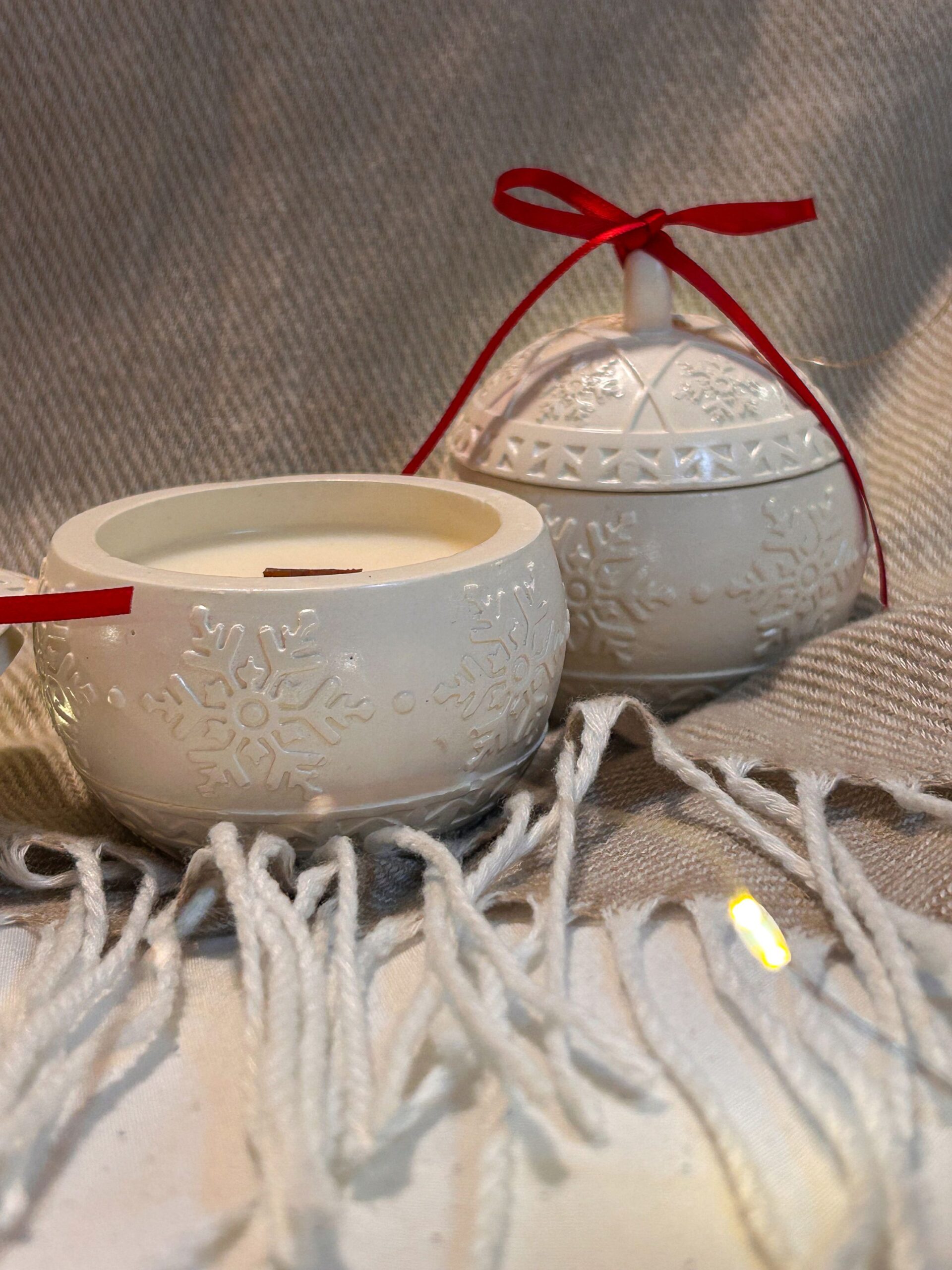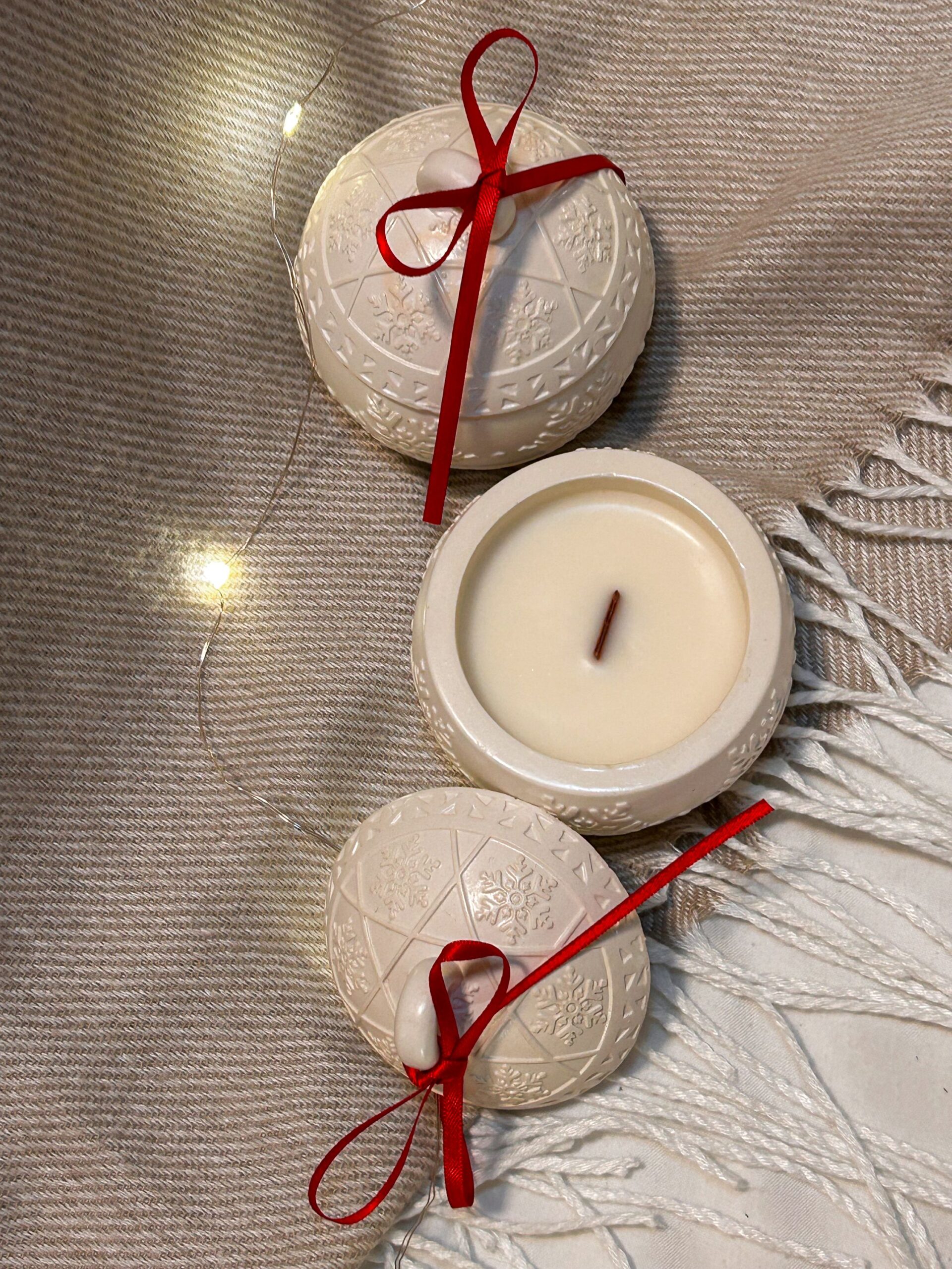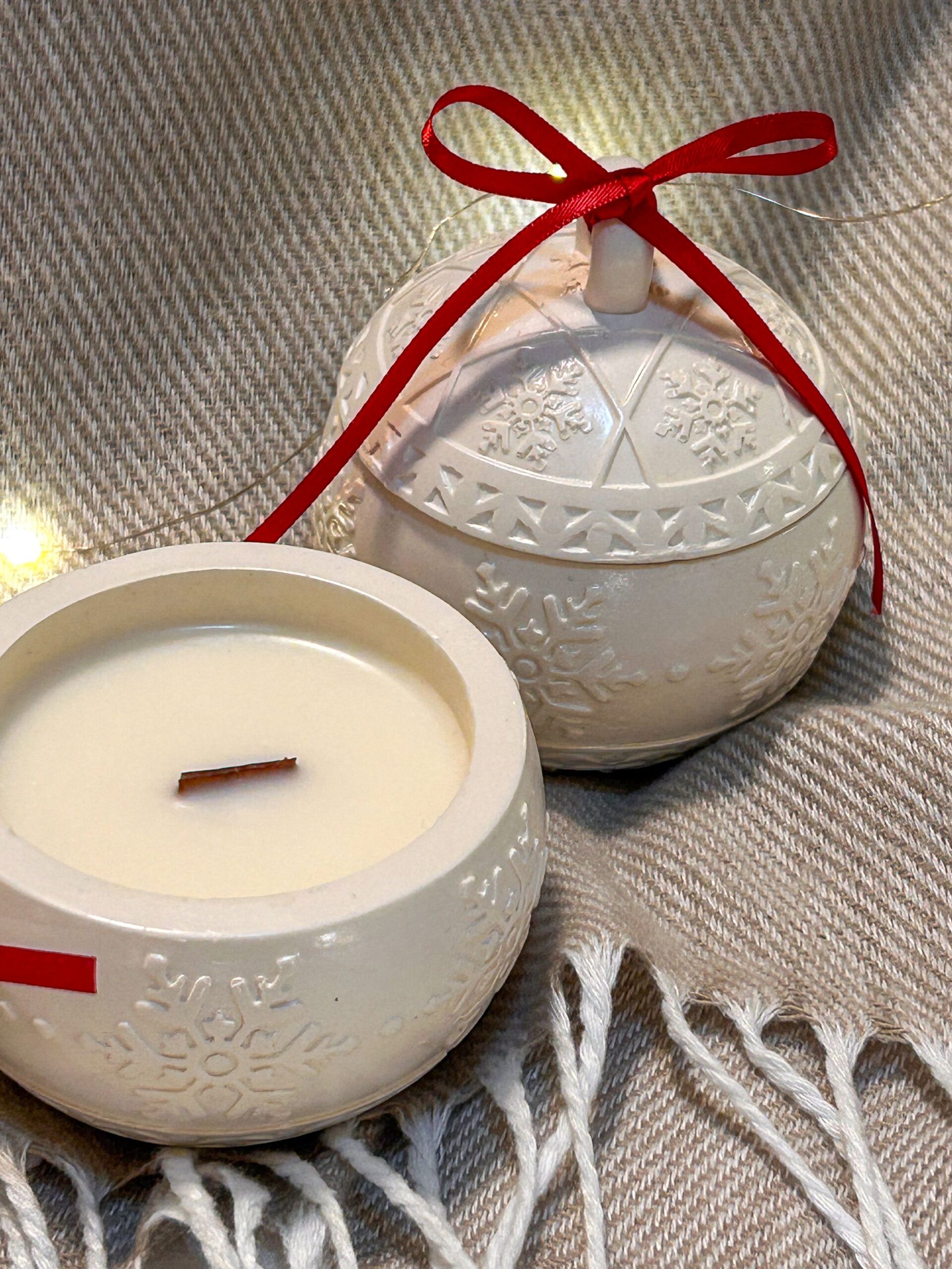 Håndlaget lys i gipskule – støpt, pusset og fylt for hånd. Jeg bruker kun høykvalitets soyavoks og sertifiserte aromaoljer med duft av vanilje og karamell. Aromaen merkes allerede når du tar lyset med hjem – og når flammen tennes, fyller den rommet med en dyp, varm og intens duft som skaper ekte julestemning. Etter at lyset har brent ned, kan potten lett vaskes og brukes videre – som dekor, oppbevaring eller en koselig detalj som lever videre også etter jul. 🕯️⭐
