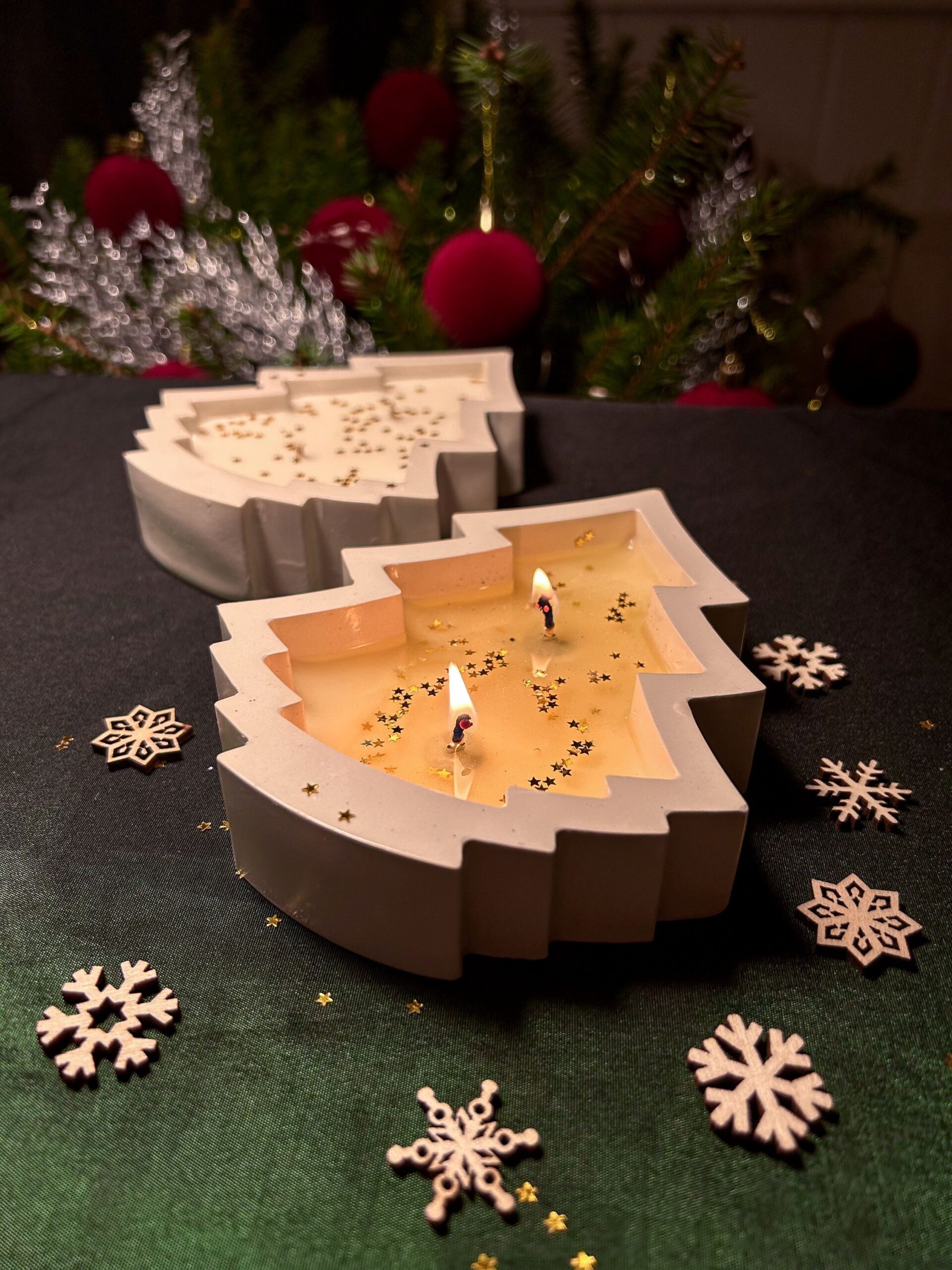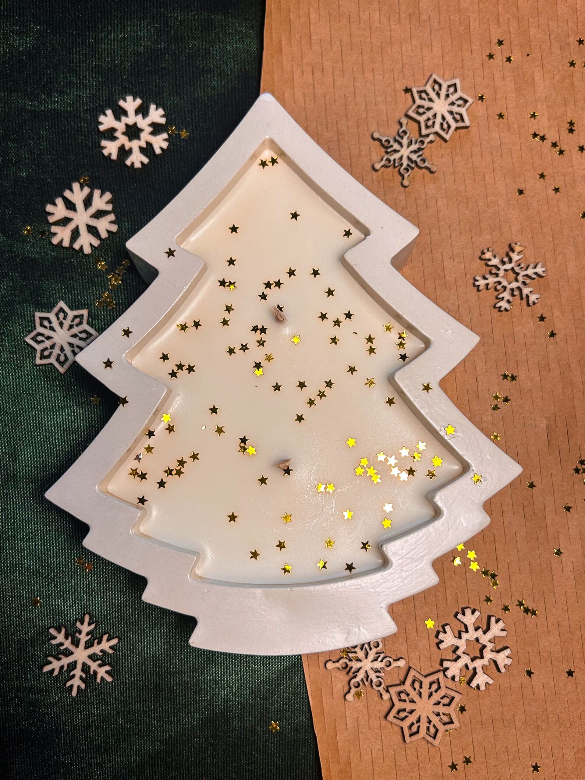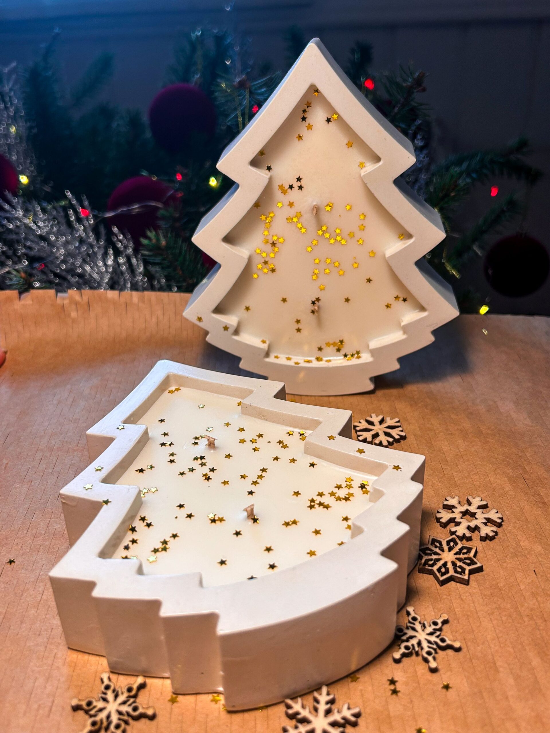 Håndlaget lys i gipsform som et lite juletre – støpt, slipt og fylt for hånd. Jeg bruker kun høykvalitets soyavoks og sertifiserte aromaoljer med en myk, søt duft av vanilje som gir varme og ro. Duften merkes allerede når du tar lyset med deg hjem – og når flammen tennes, sprer den en enda rikere, kremet julestemning gjennom rommet. Når lyset er brent ned, kan gipspotten enkelt vaskes og brukes videre som dekor, en liten oppbevaring eller bare som et vinterminne som varer.🕯️⭐