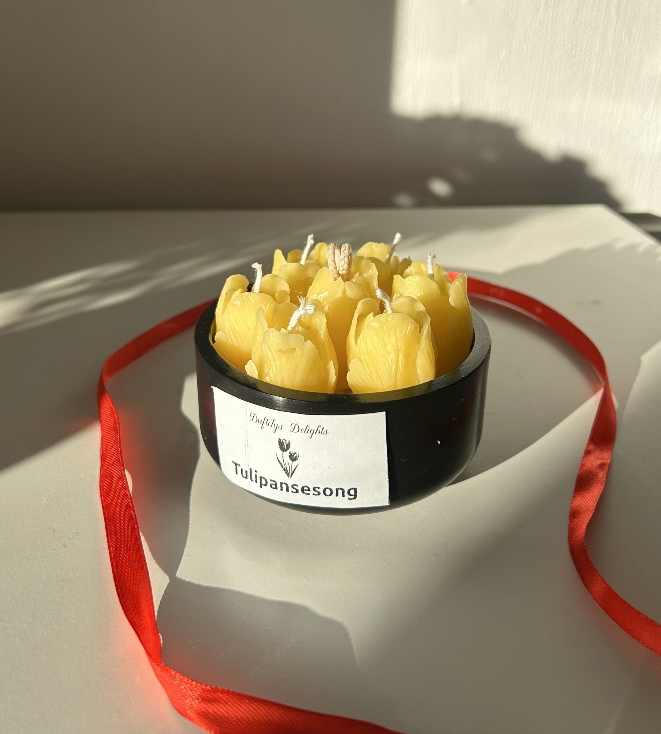 Duften av tulipan fyller rommet med en frisk, blomstrende aroma som sprer seg mildt og naturlig – en levende og oppløftende opplevelse når lyset tennes.