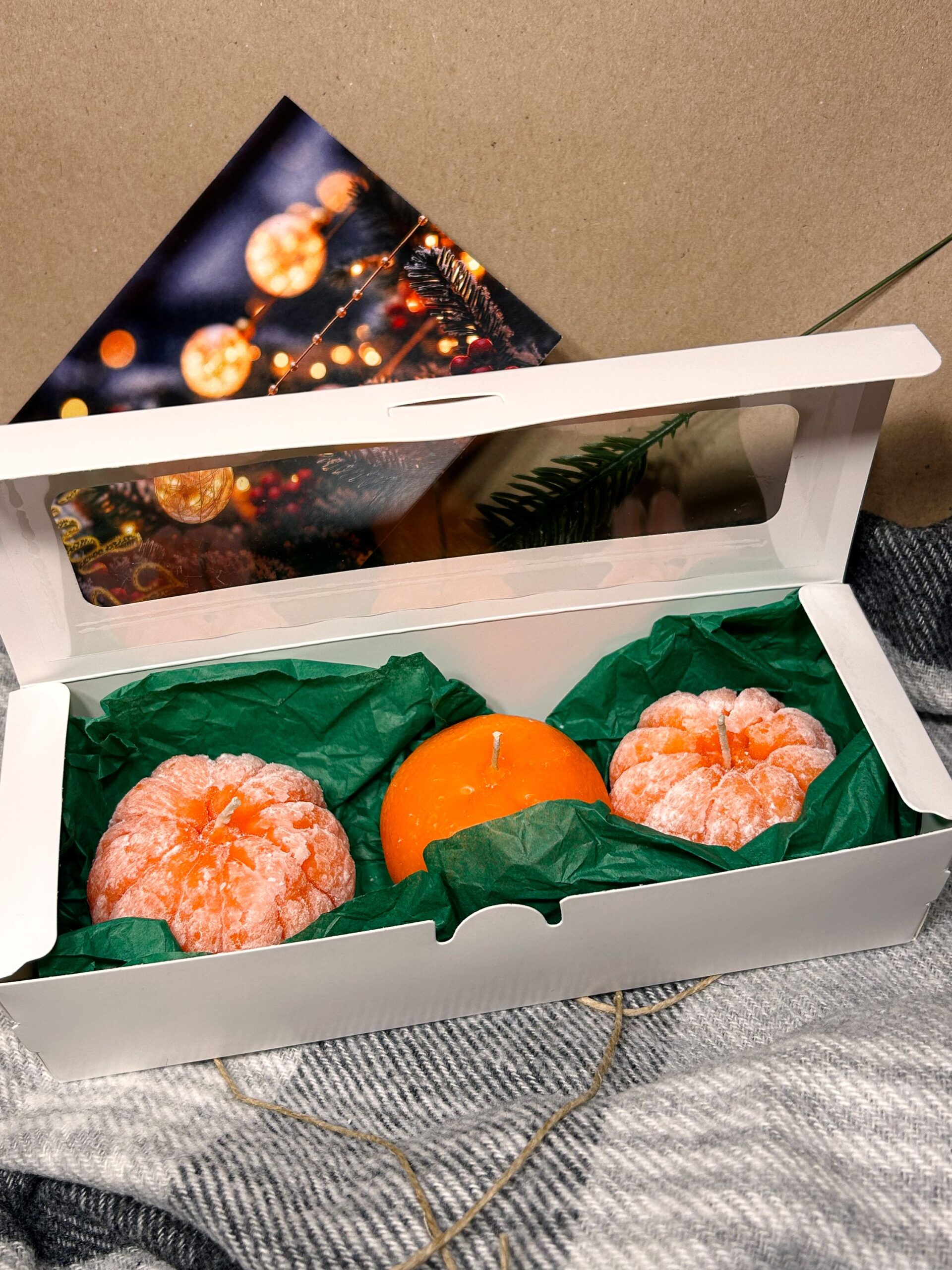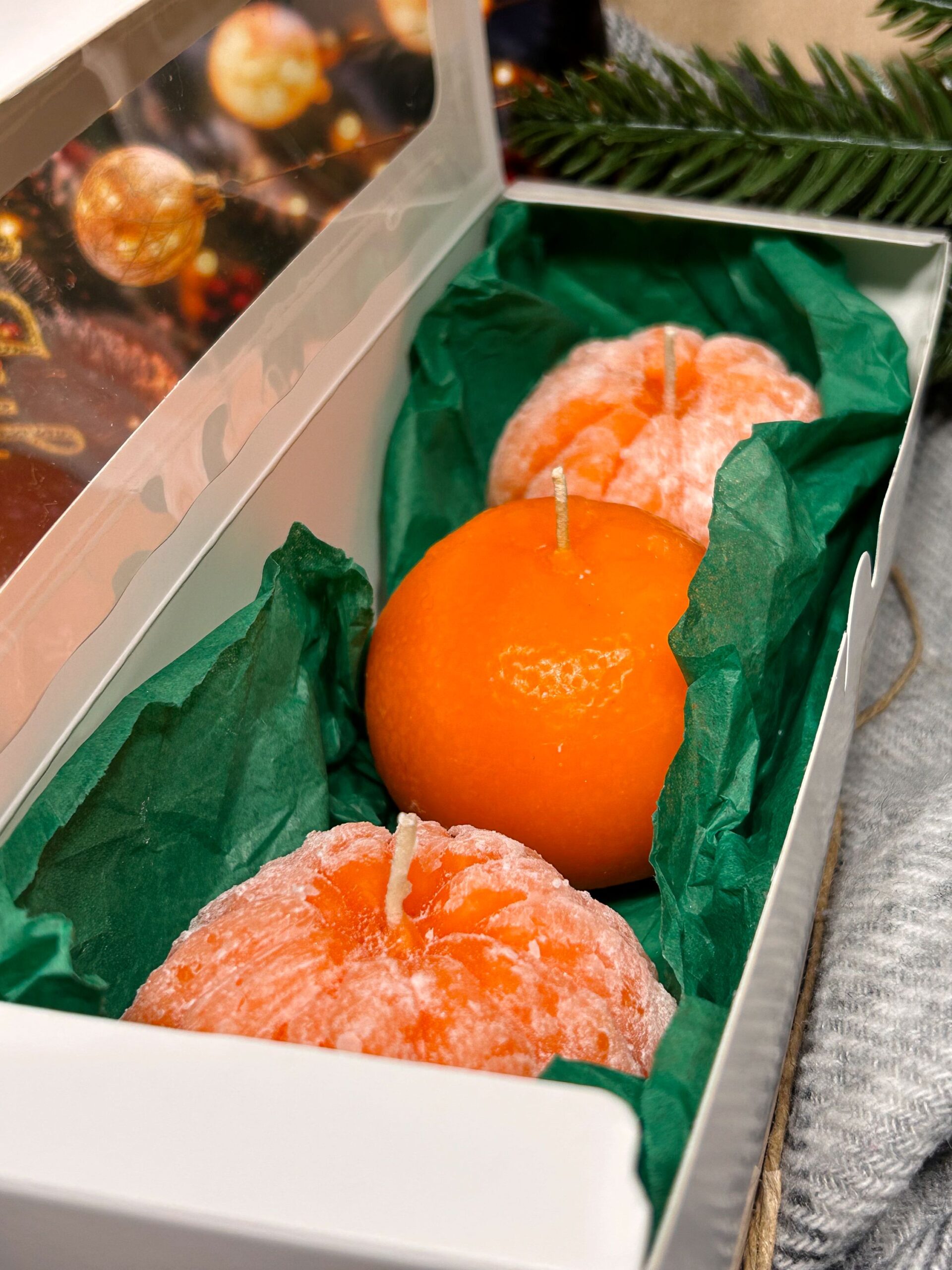 En liten kasse full av varme, farge og juleglede. I denne esken ligger tre håndlagde voksmandariner – hver av dem støpt i naturlig bivoks med en nydelig, sertifisert duft av mandarin. Tenn en, og rommet fylles straks med følelsen av fersk sitrus og desembermagi.