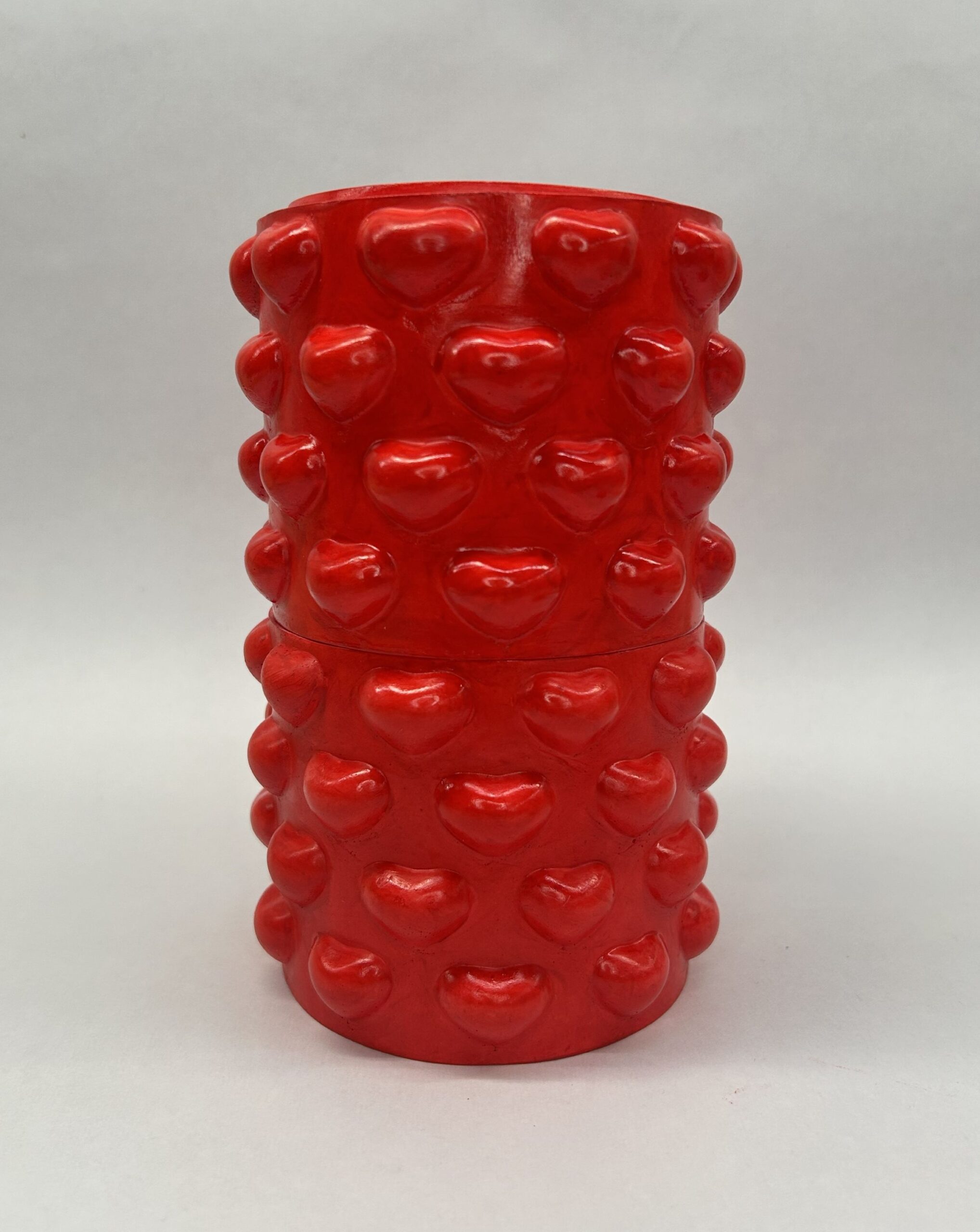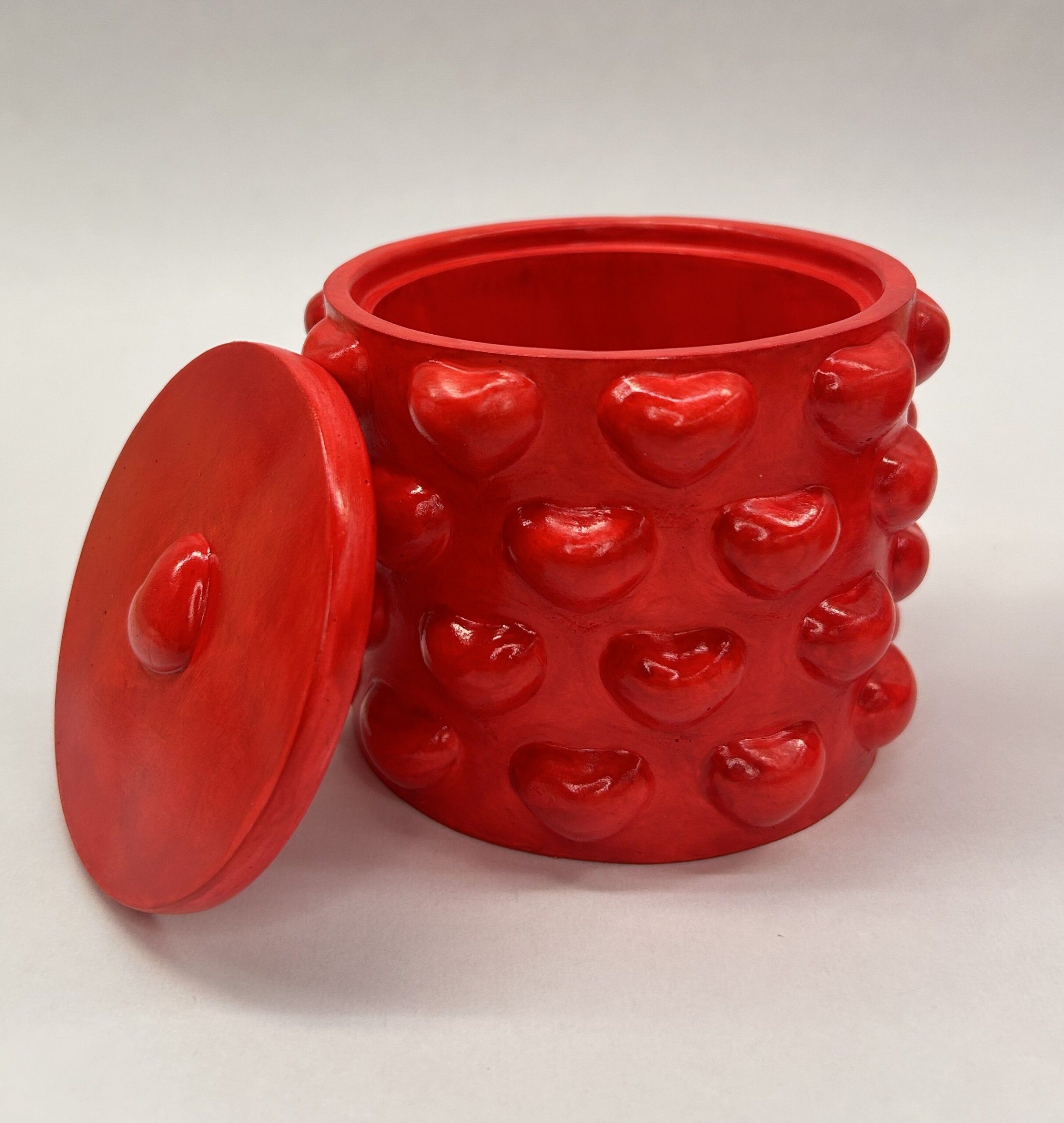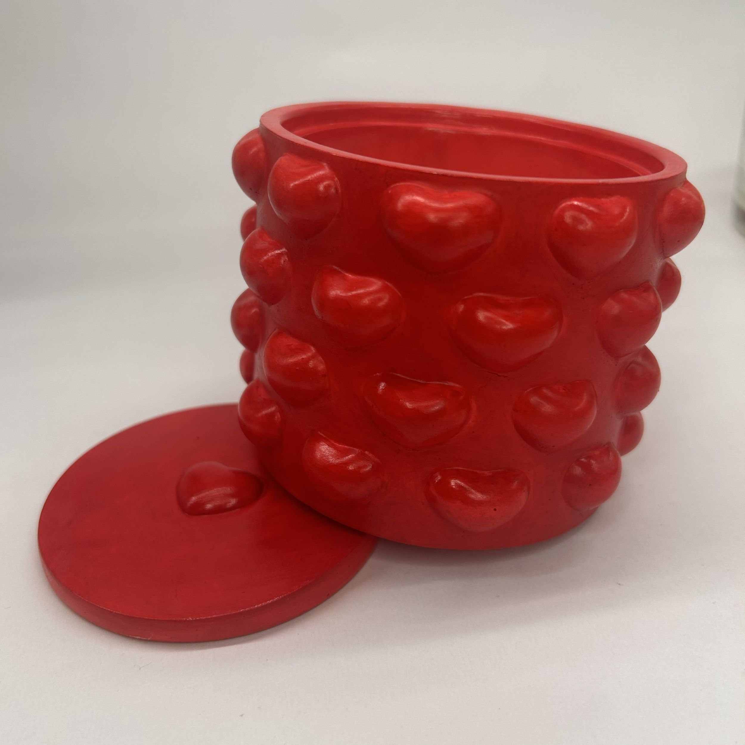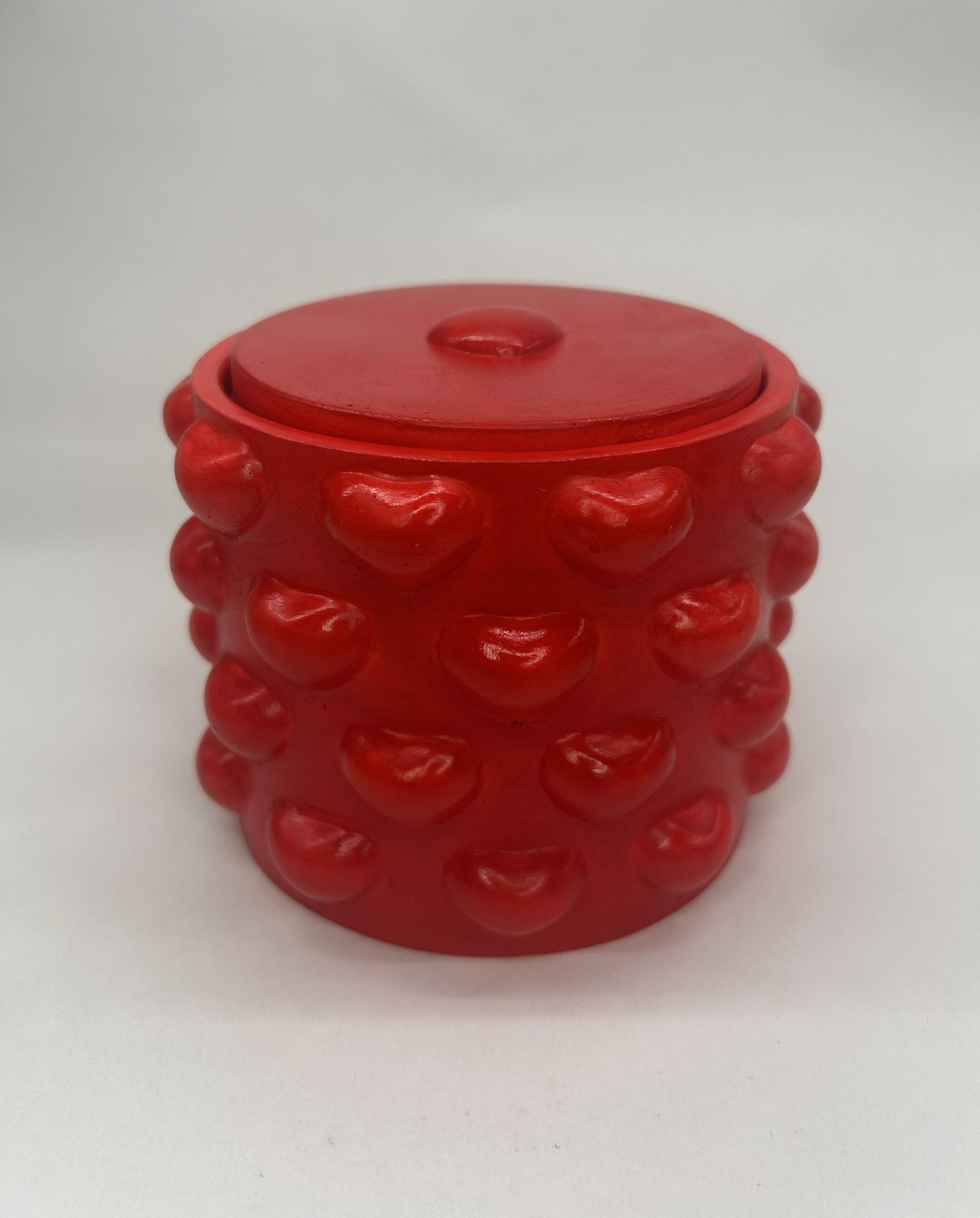 En soyavokslys i en klart rød, håndlaget gipsbeholder – skapt for varme øyeblikk og god stemning